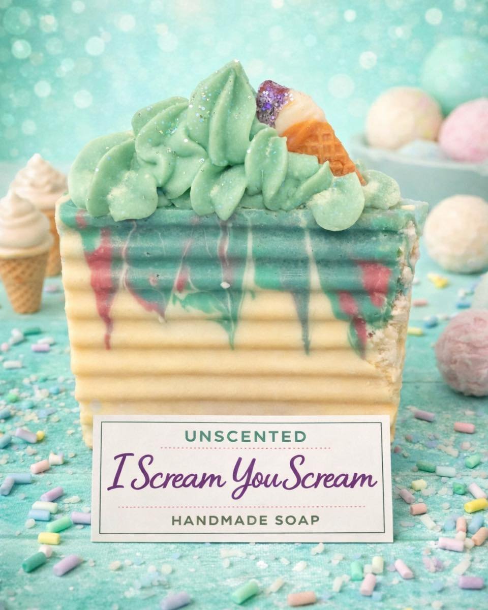 The colors and embeds in our soaps are hand-selected and rigorously tested. We use premium micas, pigments, FDA batch-certified flakes and dyes, glitters, and other colorants that are both beautiful and safe.